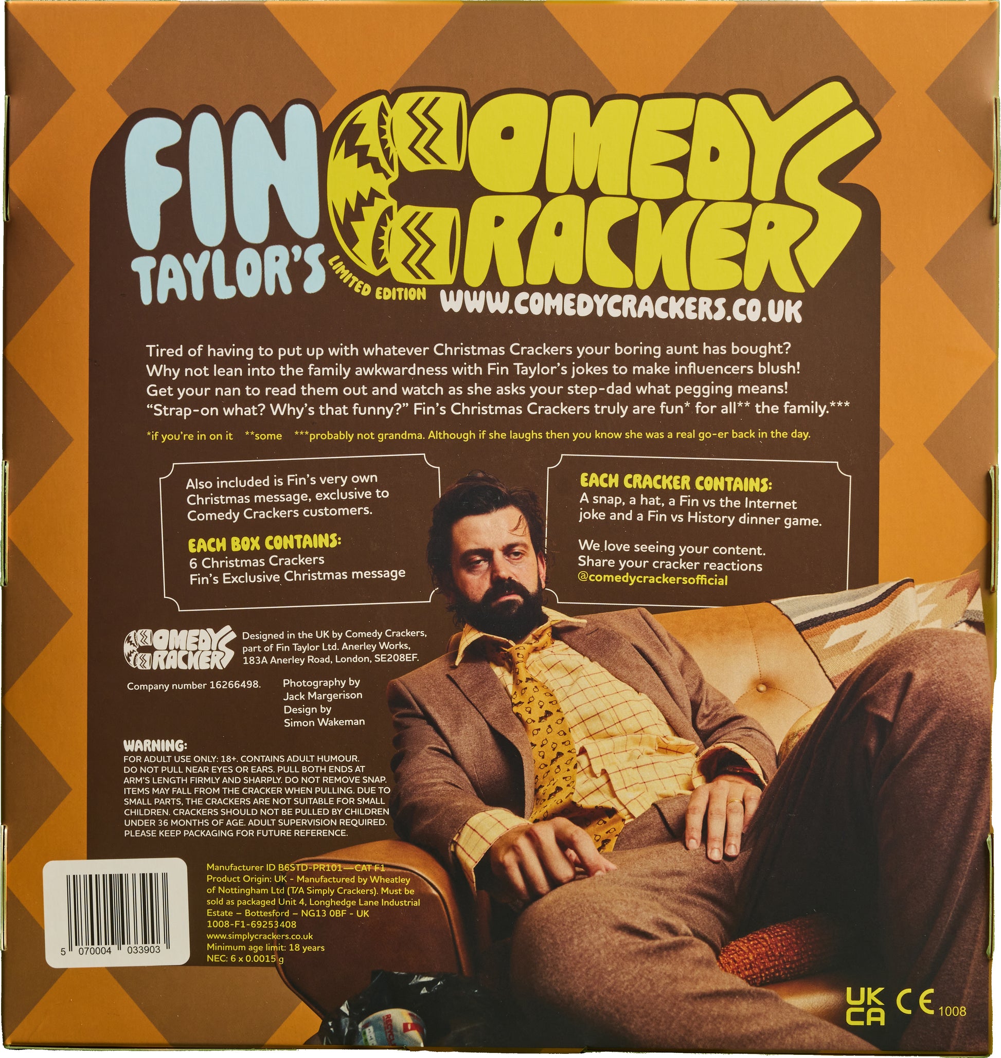 - 6 x crackers, containing a snap, a hat, a brand new Fin vs The Internet Joke, and a Fin vs History game.